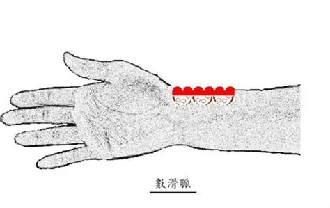 滑脉带给人的是触感上的不同,使用正确的把脉方法搭到滑脉上后,你会感觉到有一排小弹珠在血管中游过,并且会依次经过诊断者的无名指、中指和食指,速度会较快。