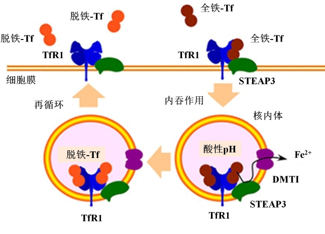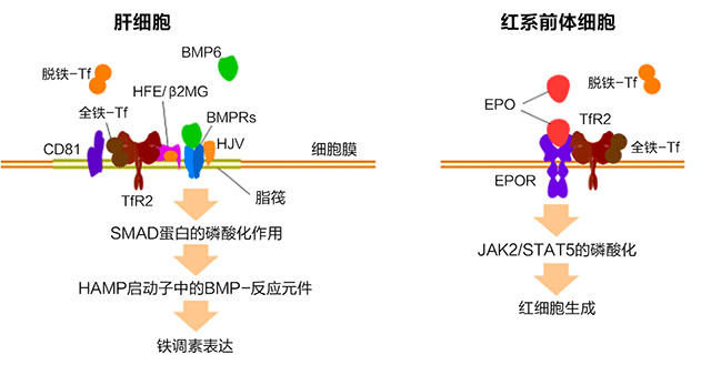 转铁蛋白是功能状态的铁,主要是结合胃肠道吸收的2价铁离子转运到组织或是红细胞内,在缺铁状态时,血浆TRF浓度上升,经铁有效治疗后恢复到正常水平。