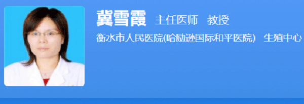 冀雪霞,衡水市人民医院(哈励逊国际和平医院)生殖中心主任医师,妇产科学硕士,河北医科大学硕士研究生导师,从事妇产科临床工作20余年。