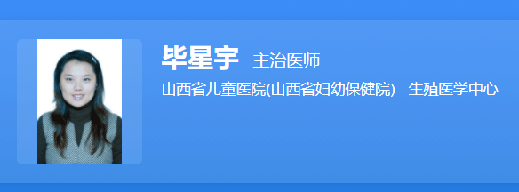 毕星宇,山西省儿童医院(山西省妇幼保健院)生殖医学中心主治医师,硕士,从事辅助生殖实验室工作7年。