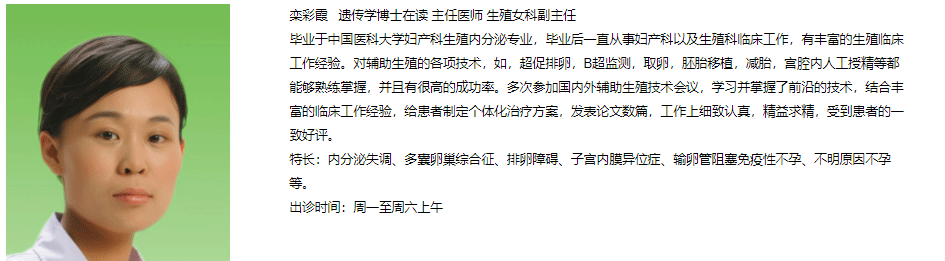 栾彩霞,沈阳204医院生殖医学中心主任医师。