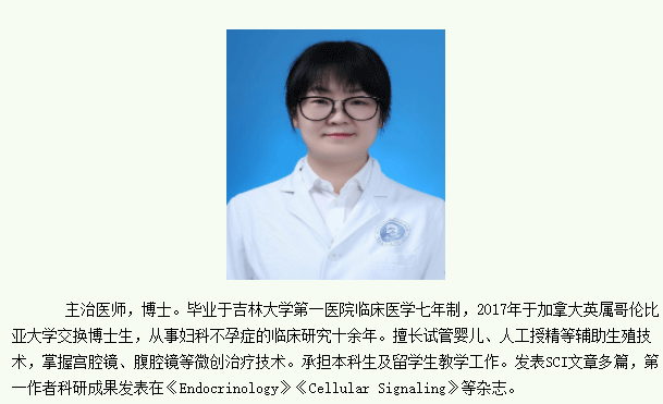 张馨月,吉林大学第一医院生殖医学中心主治医师,硕士。毕业于吉林大学第一医院。从事妇科不孕症的临床研究。