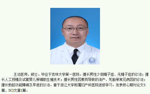 擅长男性少弱精子症、无精子症的诊治;人工授精及试管婴儿等辅助生殖技术;男性因素而导致的流产、死胎等常见病因的诊治。