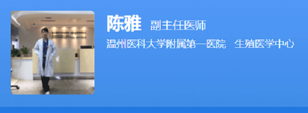陈雅,温州医科大学附属第一医院生殖医学中心副主任医师,2006年硕士研究生毕业。