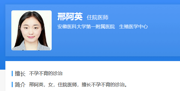 邢阿英,安徽医科大学第一附属医院生殖医学中心住院医师。