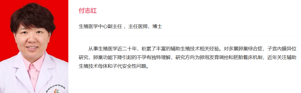 付志红,深圳市妇幼保健院生殖医学中心主任医师,毕业于第一军医大学,博士研究生,兼职研究生导师,从事临床工作19年。
