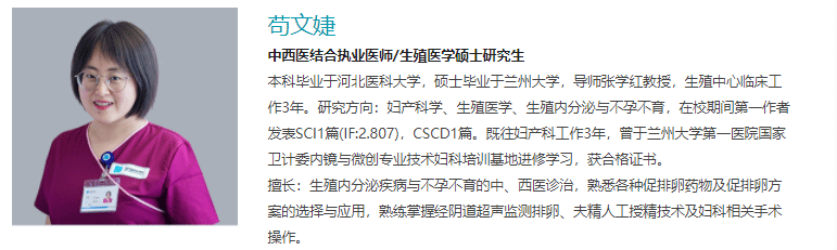 苟文婕,西安安琪儿妇产医院生殖中心执业医师。